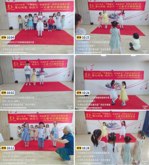 早早的,小朋友就由家長領(lǐng)著,陸陸續(xù)續(xù)來到社區(qū)新時(shí)代文明實(shí)踐站,在志愿者們的引導(dǎo)下,測體溫、簽到。小朋友驚喜的看到有志愿者給小朋友現(xiàn)場制作棉花糖。小朋友手拿棉花糖,由志愿者帶領(lǐng)著排隊(duì)到活動室做熱身自我介紹。今天的活動分三部分,第一場是“頂娃娃”游戲:在志愿者們的帶領(lǐng)下,親子家庭頭碰頭頂著一個布娃娃,學(xué)螃蟹走,橫著從起點(diǎn)走到終點(diǎn)。家長小朋友手牽手,頭碰頭,一組組開心愉悅的走過,現(xiàn)場一片歡聲笑語,熱鬧非凡;接下來,志愿者又帶著小朋友來到猜謎語區(qū)域,邀請小朋友比試猜謎語。小朋友在家長和志愿者的一點(diǎn)一點(diǎn)的提示下,終于猜對了,拿到獎品后,小朋友開心不已;10點(diǎn)左右,信心滿滿的小朋友們都圍坐在觀眾席等待著今天的精彩部分--六·一兒童節(jié)節(jié)目大匯演。在主持人的報(bào)幕聲中,首先出場的是朗誦《世上的孩子有多少》的小朋友們,個個打扮的美美,在臺上聲情并茂的朗誦著,每一字每一句都誦出了兒童們的朝氣蓬勃。接下來的合唱《聽我說聲謝謝您》小朋友們長出了對社區(qū)、志愿者們的感恩之情。接下來舞蹈《咖喱咖喱》、英文歌曲《WALKING WALKING》、《器械操》,還有朗誦《做最好的自己》等等,伴隨著優(yōu)美的音樂節(jié)奏,孩子們一起邊唱邊舞,一個個節(jié)目,精彩無比,美輪美奐,讓人目不暇接,臺下喝彩聲、掌聲不斷。最后隨著《童心向黨》的音樂,把整個今天的活動推向一個高潮。