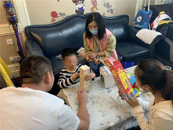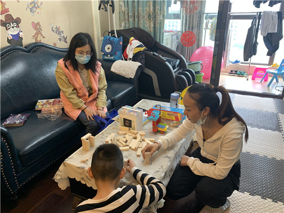 社區(qū)志愿者帶著孩子感興趣的“疊疊樂(lè)”益智積木、書(shū)籍等用品來(lái)到了自閉癥兒童家庭,孩子對(duì)積木十分感興趣,當(dāng)即拆開(kāi)動(dòng)手疊了起來(lái)。志愿者一邊陪著孩子疊積木,一邊跟其親切地交談,孩子在志愿者的陪伴下漸漸露出真摯開(kāi)心的笑臉。隨后,志愿者翻開(kāi)準(zhǔn)備的圖文故事書(shū),開(kāi)展互動(dòng)式閱讀,通過(guò)聲情并茂的講故事,與孩子進(jìn)行交流,志愿者鼓勵(lì)家長(zhǎng),相信在親人愛(ài)的陪伴下,自閉癥兒童也能享有終身受用不盡的閱讀樂(lè)趣。家長(zhǎng)對(duì)志愿者的到來(lái)表示十分感謝,謝謝社區(qū)對(duì)孩子的關(guān)愛(ài),給孩子帶來(lái)了歡樂(lè),也讓家長(zhǎng)明白了要讓孩子更多地接觸外界,才能一步一步達(dá)到最終“融合”的目標(biāo)。