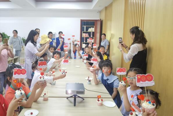 蛋糕DIY環(huán)節(jié)在溫馨的氣氛中展開,孩子們手中拿著工具有模有樣的涂抹,家長們從旁協(xié)助,用他們的巧手制作出以“建黨百年”為主題的蛋糕,向我們偉大的中國共產(chǎn)黨、偉大的祖國獻(xiàn)上真摯的祝福。