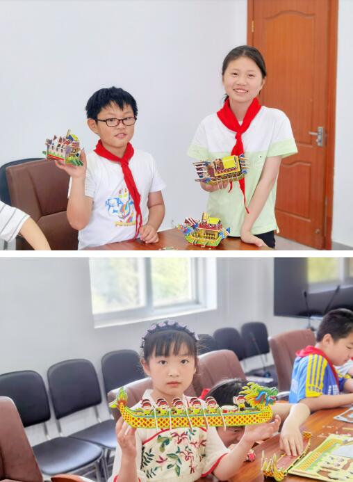 志愿者老師還通過講述端午節(jié)龍舟習(xí)俗,并與孩子們一起制作各種龍舟。