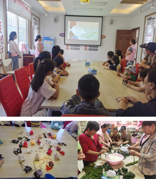 活動伊始,志愿者通過視頻講解向親子家庭傳授端午節(jié)的由來,加深他們對中國傳統(tǒng)節(jié)日文化的了解。親子家庭的大人和小孩們聽說今天可以將自己包的粽子做的香囊送去看望小區(qū)獨(dú)居老人,每個(gè)人都興奮、認(rèn)真地沉浸在包粽子做香囊的“競賽”中,在大家通過近30分鐘的努力下,粽子、香囊成品都已完成。