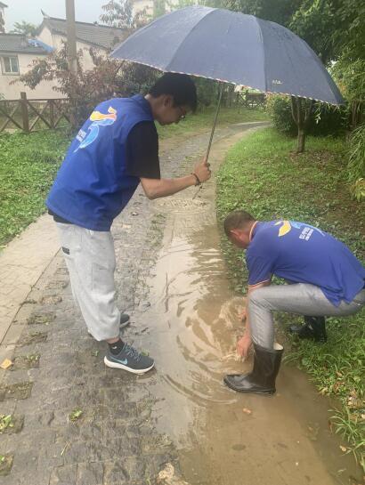 2021年06月10日13時(shí)28分江寧區(qū)氣象臺(tái)發(fā)布雷暴黃色預(yù)警信號(hào),佘村的天,黑沉沉的布滿了烏云,頃刻間,便下起了滂沱大雨??粗聜€(gè)不停的大雨,南京市江寧區(qū)東山街道佘村社區(qū)的網(wǎng)格員們心憂社區(qū)路段被堵,在下雨的第一時(shí)間就在網(wǎng)格群中提醒大家做好防護(hù)措施,隨后便拿起雨傘趕赴村中查看村內(nèi)積水實(shí)況。對(duì)產(chǎn)生積水的地方進(jìn)行疏通,并查看窨井內(nèi)污水流動(dòng)情況。