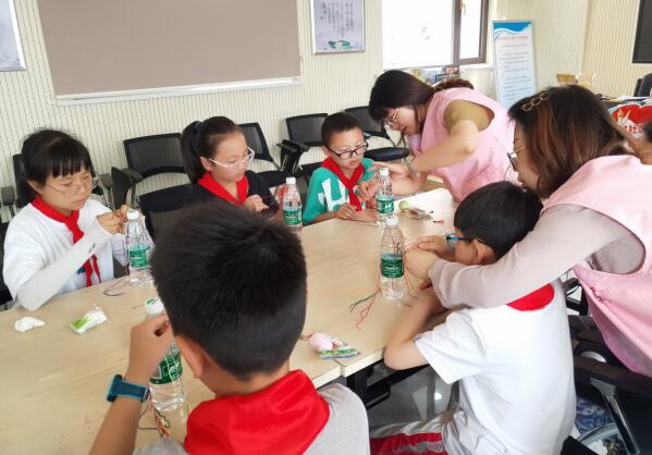 近日,南京市棲霞區(qū)燕子磯街道電瓷社區(qū)便民服務(wù)中心關(guān)工委端午節(jié)教同學(xué)們編七彩鴨蛋繩。