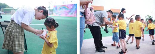 仲夏天童聲悅耳,福幼園笑語飛揚。小朋友們稍作休息后,領取游園卡,在老師們的帶領下,分批次到達各個游戲點,迫不及待地玩起各攤點游戲,打卡集贊。