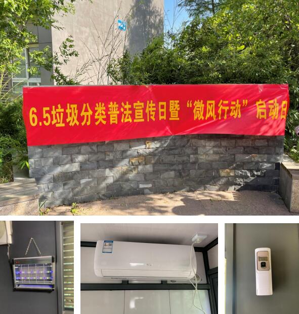 為民服務(wù),改善分類箱房環(huán)境。在“65世界環(huán)境日”當(dāng)天,江寧街道垃圾分類“微風(fēng)行動(dòng)”正式啟動(dòng)。針對(duì)垃圾分類箱房異味重、指導(dǎo)員夏季值守氣溫較高、小區(qū)分類氛圍不濃等現(xiàn)狀,街道垃分辦統(tǒng)籌考慮,以此次“微風(fēng)行動(dòng)”為契機(jī),對(duì)麒麟園小區(qū)箱房進(jìn)行一次“微改造”。通過(guò)管理間加裝空調(diào)、滅菌燈、香氛噴霧等措施,進(jìn)一步改善箱房?jī)?nèi)部環(huán)境,此舉不僅為值守在內(nèi)的指導(dǎo)員提供“清新與清涼”,也得到小區(qū)居民的認(rèn)可和支持。