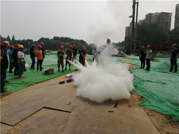 當天上午九點,社區(qū)和項目單位工作人員在現場懸掛橫幅,張貼宣傳海報,并安置演練物品。接著,全體人員集合,由項目經理作活動動員講話,介紹活動流程和注意事項。然后,工作人員們在安全員介紹完滅火器的使用步驟之后,分組操作滅火器滅火。最后,社區(qū)工作人員向項目單位職工發(fā)放宣傳單頁,倡導職工加強安全學習,提高警惕,規(guī)范作業(yè),保護自己和工友的人身財產安全。