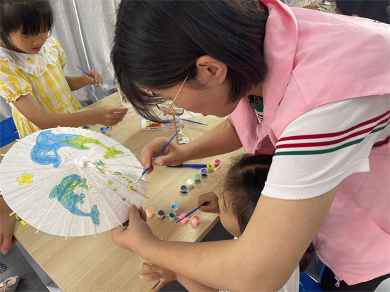 父愛是一把大傘,在風(fēng)雨交加的路上,為孩子遮風(fēng)避雨,讓孩子能夠健康、快樂、無憂的成長,他們的愛偉大而又無聲。彩繪油紙傘環(huán)節(jié),小朋友們拿起彩筆,用他們獨特的表達(dá)方式在油紙傘上繪下對于父親的真情告白,也繪下從“長江大保護”的莊嚴(yán)承諾。