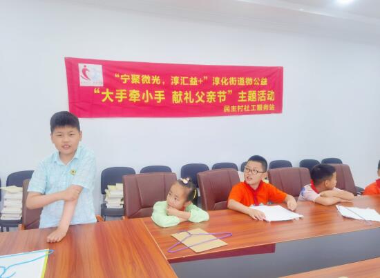 在父親節(jié)來臨之際,為了讓孩子更好的感受父愛的偉大與無私,理解父親的付出,感恩父親的培育。6月19日,江寧區(qū)淳化街道民主村組織留守兒童開展了“大手牽小手,獻(xiàn)禮父親節(jié)”的主題活動(dòng)。