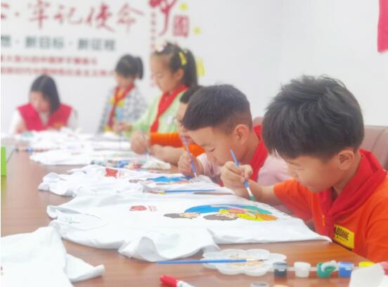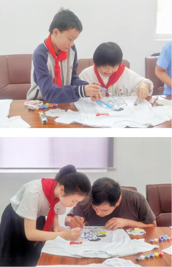 緊接著,志愿者們與家長一起布置場地、準(zhǔn)備白色T恤、多彩顏料等物資,為孩子們開展父愛如衫,獻(xiàn)禮父親節(jié)手繪文化衫活動(dòng)。工作人員一一分發(fā)顏料及畫具,指導(dǎo)大家先用勾線筆勾出圖案輪廓再涂色,只見每個(gè)少年都化身美術(shù)大師,仔細(xì)勾勒,小心涂色,描繪屬于自己的獨(dú)一無二的T恤。