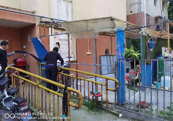 據(jù)悉,此處違建搭建于小區(qū)4棟2單元的陽臺(tái)外,結(jié)構(gòu)為鋼架結(jié)構(gòu),由11樓住家戶搭建,主要是提供場(chǎng)地供居民打牌,貼補(bǔ)些家用。此違建除占用公共空間,影響小區(qū)環(huán)境,也影響著一樓居民的正常生活。社區(qū)也多次收到居民的12345投訴,要求取締違建。