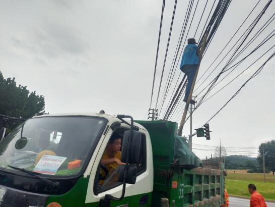 一天早上,面對紅梅線較大的車流量,一處電線意外被路過車輛扯斷。為了及時的消除安全隱患,志愿者們又第一時間趕赴現場,因地制宜,就地取材,及時有效的將扯斷線路固定好,消除了安全隱患。