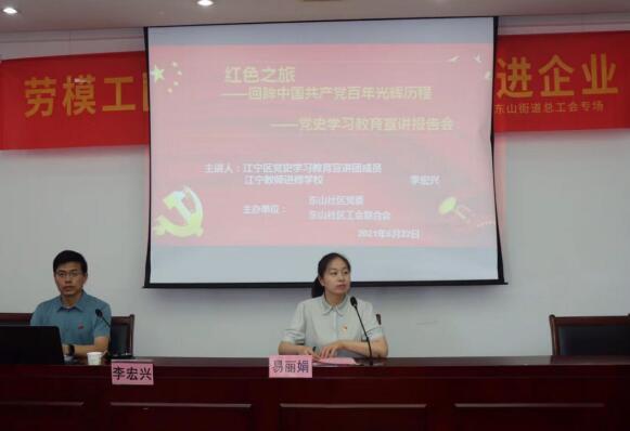 為慶祝中國共產(chǎn)黨建黨100周年,傳承紅色基因,錘煉黨性思想,6月22日,江寧區(qū)總工會“勞模工匠進(jìn)校園 思政教師進(jìn)企業(yè)”活動—東山街道總工會專場在東山社區(qū)舉行。