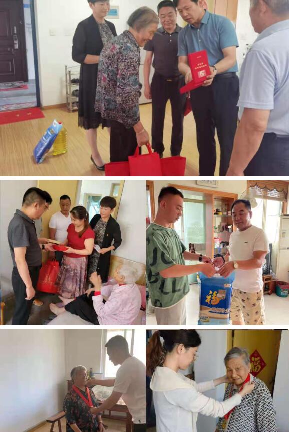 街道、社區(qū)一行人帶著大米、油等生活用品來到老黨員家中,親切詢問老黨員們的身體狀況,并為其佩戴紀念章,為入黨60年的老黨員們送上政治生日禮物,將黨的關(guān)懷與溫暖傳遞到他們的身邊。“希望你們能夠珍惜這份榮譽,繼續(xù)傳承和發(fā)揚黨的光榮傳統(tǒng)和優(yōu)良作風,發(fā)揮余熱帶動身邊居民群眾一起做實事。”社區(qū)相關(guān)負責人說道。