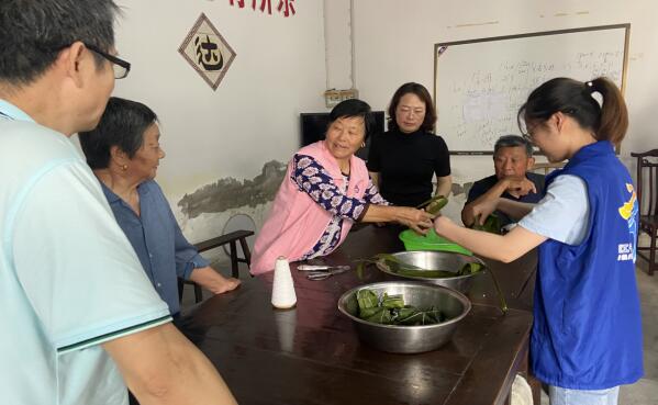 三界社區(qū)網(wǎng)格員端午節(jié)包粽子送溫情