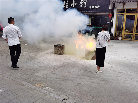 講座結(jié)束后,所有人來到了室外,特勤隊(duì)員向大家介紹了消防器材的使用方法和技能,然后進(jìn)行了消防實(shí)戰(zhàn)演練,現(xiàn)場準(zhǔn)備了兩個(gè)滅火桶及16具滅火器,商戶們在消防隊(duì)員的指導(dǎo)下,全部完成了滅火訓(xùn)練。