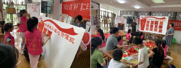 活動邀請老黨員為孩子們講紅色故事,分享入黨經(jīng)歷,讓小朋友們在社區(qū)接受紅色教育,將黨的教育銘記于心,珍惜當(dāng)下生活,愛國愛家不忘黨。“從南湖紅船到八一槍聲,從井岡號角到長征壯歌,從抗日烽煙到建國大業(yè)…”老黨員用一首慷慨激昂的詩朗誦帶領(lǐng)孩子們回顧了中華民族發(fā)展征程中的各項重大事件,他說:“中華民族一路披荊斬棘,中國人民不斷奮起抗?fàn)?,才有了今天的美好生活,我們?yīng)該倍加珍惜”?;顒蝇F(xiàn)場老黨員全程站立,聲情并茂,用樸實易懂的語言為小朋友們講述自己的紅色故事。小朋友們個個都聚精會神,認(rèn)真的聆聽,隨著真實故事的跌宕起伏,孩子們稚嫩的臉上都表現(xiàn)出不同表情,仿佛看見無數(shù)革命烈士為了保衛(wèi)國家主權(quán)拋頭顱、灑熱血的場景。在隨后的剪紙過程中,孩子們既興奮又自豪,在驚嘆于剪紙的神奇之外,他們也了解了建黨百年的歷史,增強(qiáng)了愛國情懷。