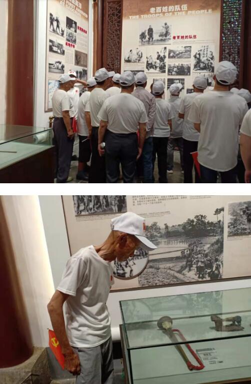 現(xiàn)場,企業(yè)退休黨員聆聽著講解員認(rèn)真而細致的講解,在講解中,他們仿佛又走進那一段硝煙彌漫、戰(zhàn)火紛飛的歲月,而現(xiàn)場一件件文物,一張張的照片,讓大家再一次重溫了軍民團結(jié)抗日斗爭的光輝歷史,也深刻體會到革命的艱辛。