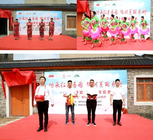 活動(dòng)中,社區(qū)自編自導(dǎo)自演的文藝節(jié)目廣受黨員的歡迎,由社區(qū)志愿者編排表演的快板書《歌頌新農(nóng)新面貌》,贊新農(nóng)社區(qū)美麗鄉(xiāng)村建設(shè),百姓幸福生活;舞蹈《看山看水看中國(guó)》,讓黨員感受到如今祖國(guó)的美好;三句半《傳承鄒家英雄魂 歌唱新農(nóng)新面貌》,贊美家鄉(xiāng),展望未來(lái),向祖國(guó)獻(xiàn)禮,彰顯了青年人的社會(huì)責(zé)任擔(dān)當(dāng),為新時(shí)代鄉(xiāng)村振興奉獻(xiàn)自己的滿腔熱血。同時(shí),李韋書記和龐成春為鄒家紅色教育基地揭牌。