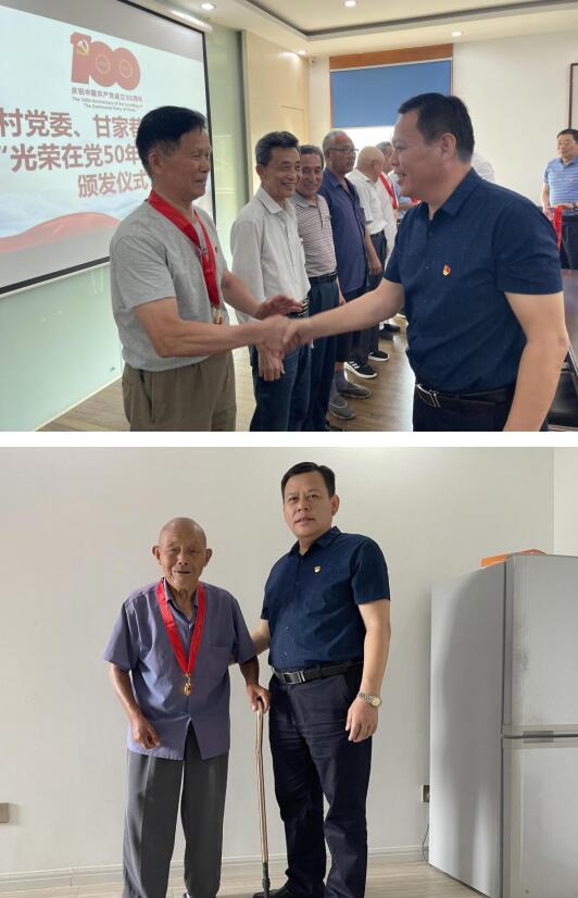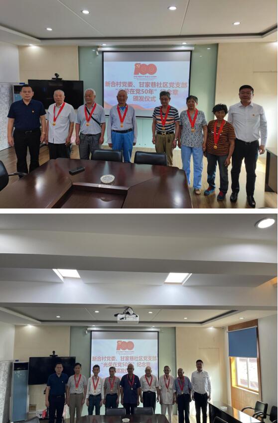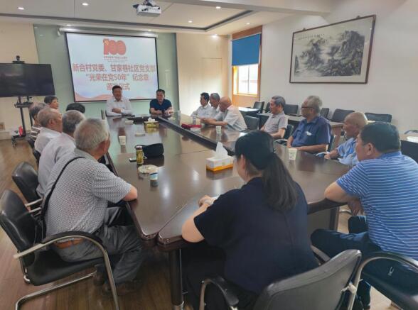 6月30日新合村村委會(huì)會(huì)議室,新合村黨委、甘家巷社區(qū)黨支部舉辦頒發(fā)“光榮在黨50年”紀(jì)念獎(jiǎng)?wù)聝x式暨老黨員座談會(huì)。和在場(chǎng)的14位老黨員聚在一起,暢談回憶50年前的入黨初心,追憶奮斗歲月,感悟幸福時(shí)刻。隨后,新合村黨委高書記、甘家巷社區(qū)黨支部屠書記給14位老黨員頒發(fā)了“光榮在黨50年”紀(jì)念章,金光閃閃的紀(jì)念章掛在胸前,老黨員們滿懷自豪。