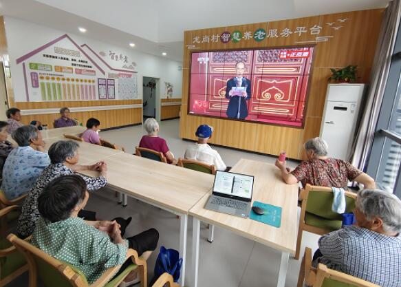 現(xiàn)場,老人聚集在龍尚村智慧養(yǎng)老服務(wù)平臺,集中觀看了慶祝大會,并聆聽了習(xí)近平總書記的重要講話。觀看過程中,老人對于黨和國家的熱愛,更加濃郁,現(xiàn)場老人們發(fā)出了陣陣感慨,對于他們這些經(jīng)歷過黨和國家的艱苦歲月,與艱難建設(shè)的人來說,如今的黨和國家,早已是滄桑巨變,國家富強,生活水平越來越好深有體會。