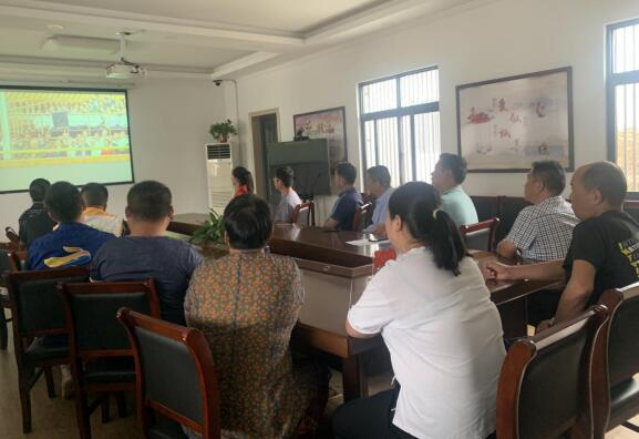 黨員們對(duì)“七一”的到來期盼已久,一大早,村子禮堂內(nèi)就坐滿了衣著整潔的黨員們。上午8時(shí)左右,中國(guó)人民解放軍71架戰(zhàn)機(jī)如雄鷹振翅般越過天安門廣場(chǎng),昭示著中國(guó)的力量,國(guó)旗護(hù)衛(wèi)隊(duì)官兵伴著響徹云霄的禮炮聲,莊嚴(yán)護(hù)衛(wèi)五星紅旗。鮮艷奪目的旗幟下,萬民齊唱中華人民共和國(guó)國(guó)歌,這一幕深深鐫刻進(jìn)了每一位黨員的心中,成為建設(shè)紅色力量的不竭源泉。