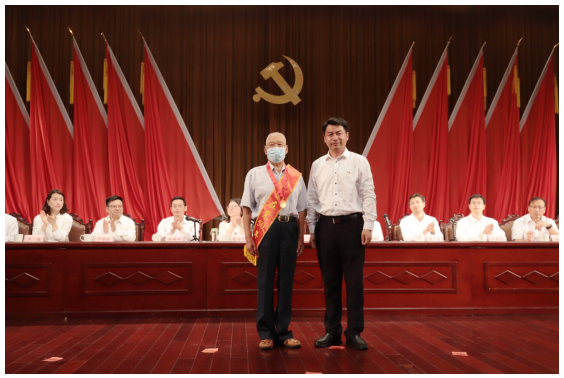 劉書記為老黨員代表頒發(fā)“光榮在黨50年”紀(jì)念章
