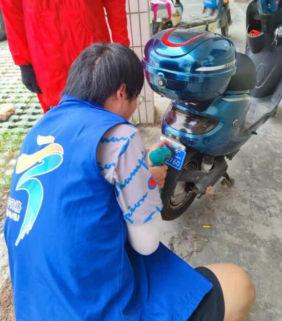 在辦理上牌活動(dòng)中,網(wǎng)格員們牽頭指揮現(xiàn)場車輛的停放、引導(dǎo)群眾排隊(duì)登記、填寫相關(guān)信息。為了確保每位村民的電動(dòng)自行車都能準(zhǔn)確無誤地裝上自己的信息牌,網(wǎng)格員們打印出登記表,一輛一輛地對車輛進(jìn)行核對,并將制作好的證件牌照裝在電動(dòng)車后方。“真的是太方便了,不需要自己去車管所登記,在家門口就能免費(fèi)為車輛上牌照,省時(shí)又省力。”前來辦理車牌的王女士說道。