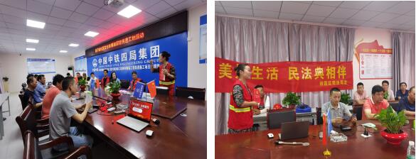 7月9日,南京市棲霞區(qū)燕子磯街道燕子磯社區(qū)司法服務(wù)中心走進(jìn)轄區(qū)在建工地中鐵四局項(xiàng)目部舉行“普法宣傳進(jìn)工地,法律意識入人心”主題宣傳活動,項(xiàng)目負(fù)責(zé)人、民工代表、工地網(wǎng)格員共同參加活動。