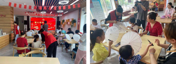 活動現(xiàn)場,志愿者貼心的為大家準備好了活動所需的材料,油紙傘、顏料筆、顏料盤?;顒右?ldquo;巧手變美圖”開始,家長與孩子一同將相同的空白圖案進行填充變成其他的圖案。每個孩子心中都有一個創(chuàng)造力精靈,孩子們自由發(fā)揮,盡情想象,利用各種色彩搭配,將紙傘裝飾得五彩繽紛。經(jīng)過1個小時的創(chuàng)作之后,各式各樣的油紙傘印入眼前。經(jīng)過家長與孩子之間配合,一把把美麗、獨特且富有創(chuàng)意的油紙傘呈現(xiàn)在了大家的面前。完成的家庭紛紛拿起自己的作品進行拍照留念并向大家分享了自己感受和收獲。