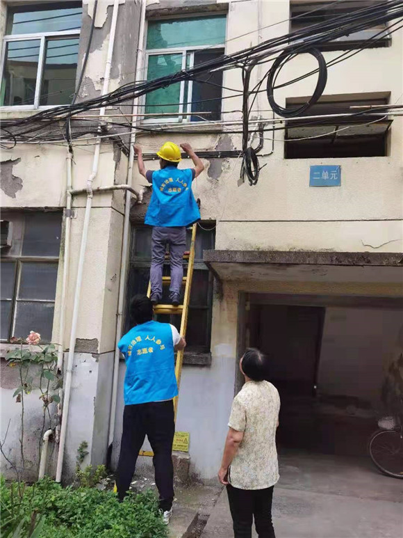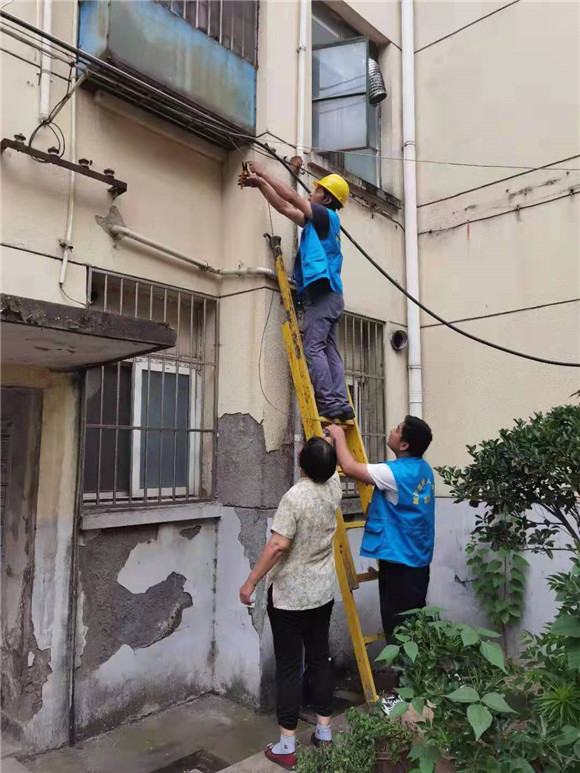 志愿者們搬來(lái)長(zhǎng)梯,采取空中作業(yè)的方式對(duì)線纜進(jìn)行剪除、捆綁與美化等工作。居民們說(shuō)道:“以前每次路過(guò)這些地方都得避著走,生怕漏電,現(xiàn)在好了,再也不用擔(dān)心這些安全隱患了。”