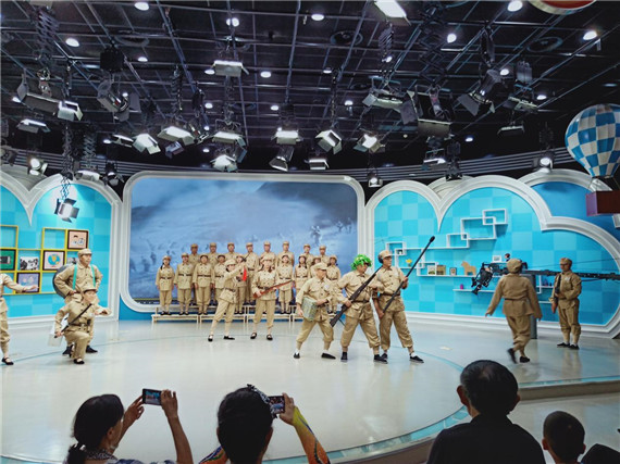 女生小合唱《黨旗飄飄》、歌舞表演《紅旗頌》和男女對唱《初心的夢》深情繾綣徐徐展開,表達了對黨、對祖國的由衷熱愛之情?!队成郊t》既演出了氣功的力量和韻味,也傳承了中華氣功精神,讓愛國主義情懷在觀眾們心里深深扎根。