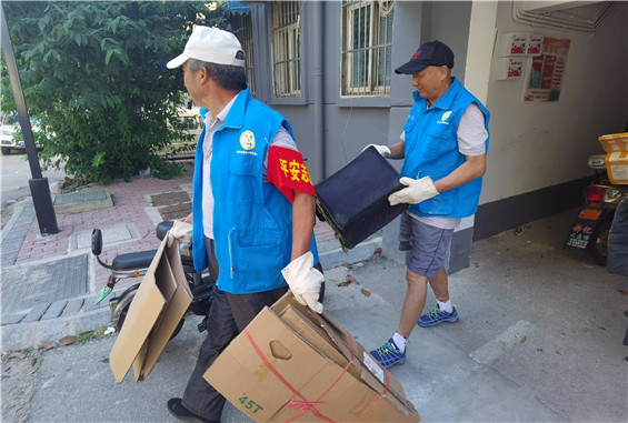 城市志愿者清理樓道雜物 除去居民安全“絆腳石”