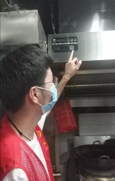夏季高溫,餐飲店油煙排放問(wèn)題增多。南京市棲霞區(qū)馬群街道蛇盤(pán)社區(qū)走訪轄區(qū)內(nèi)重點(diǎn)餐飲店珍筷大食堂,巡查新設(shè)備的使用情況。