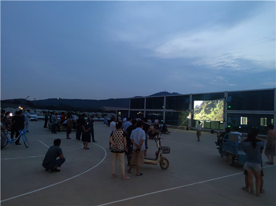 夜幕降臨,勞碌了一天的建筑工人們正清洗著泥土與汗水,看到放映工作人員的到來,工友們三五成群,聚集在廣場上等待著電影的播放。隨著電影開始放映,熱鬧的現(xiàn)場很快就安靜下來。大家紛紛坐好,進入“觀影模式”,聚精會神地觀看紅色電影《金剛川》,讓堅守在建設一線的工友們共同參與到黨史學習教育活動當中,共同重溫黨的光輝歷程,接受紅色文化洗禮。現(xiàn)場不少工友還拿出手機將放映場景拍照發(fā)給親朋好友、發(fā)布朋友圈,分享觀影的感想。