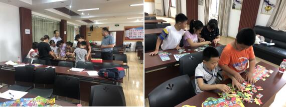 現(xiàn)場,有的孩子認(rèn)真寫著暑假作業(yè),有的孩子與小伙伴一起聊天,討論,有的孩子認(rèn)真看著漫畫書,有的孩子和老師一起聊著學(xué)習(xí)計劃,之后大家一起做起拼圖游戲,從祖國大地,到美麗的童話世界,三三兩兩進行協(xié)作,拼著圖片,現(xiàn)場充滿了歡聲笑語,孩子們在歡樂中,學(xué)習(xí)到知識,也加強了動手能力與交際能力。