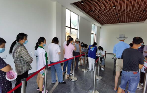 “大家都不要著急,今天我們不休息,排到100后的村民朋友可以先去吃午飯,下午再過(guò)來(lái),今天哪怕是到凌晨我們也會(huì)一次性檢測(cè)完,大家不要著急。”鶴齡社區(qū)網(wǎng)格員拿著手持?jǐn)U音器,不斷向尚不了解情況的村民介紹流程和安排。烈日炎炎,有的工作人員在烈日下做好居民排隊(duì)檢測(cè)的秩序維穩(wěn)工作;有的網(wǎng)格員為排隊(duì)等候村民發(fā)放礦泉水、加裝空調(diào)電風(fēng)扇,為醫(yī)護(hù)人員和村民群眾做好防暑降溫工作;有的黨員干部在大廳里面負(fù)責(zé)登記人員信息,10個(gè)人一組,收集身份證,做好二維碼登記,再負(fù)責(zé)帶領(lǐng)這組人員到醫(yī)生處采集核酸,讓全員核酸采集工作有條不紊地進(jìn)行。