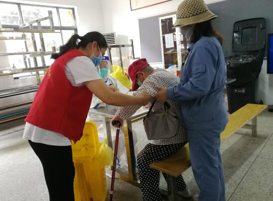 張奶奶年紀較大,身體殘疾,坐輪椅行動不便,新時代文明實踐站專門安排志愿者接張奶奶到檢測點進行檢測,期間志愿者細心服務(wù),陪同觀察,幫助她登記信息,檢測完畢之后,護送張奶奶回家。此外,另一位老年殘疾人李大爺,勉強能夠行走,志愿者一路貼心扶著李大爺,細心幫助他填寫信息,認真核對每一個選項,確認無誤后,這才陪同李大爺進行檢測,過程中,志愿者如同子女一般輕聲安慰老人不要緊張。