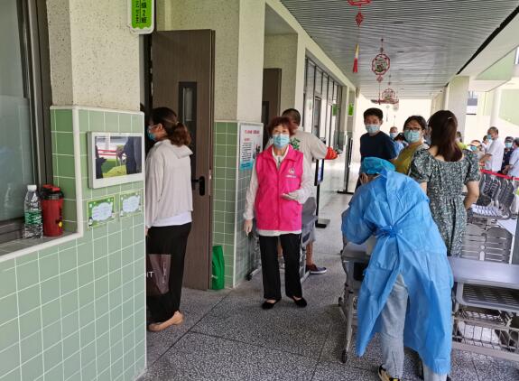 自7月21日起,南京市啟動(dòng)全員核酸檢測(cè)。棲霞街道華僑城小學(xué)檢測(cè)點(diǎn)隨處可見(jiàn)穿著“紅馬甲”服裝的志愿者忙碌的身影,他們是江南廠社區(qū)巾幗志愿者服務(wù)隊(duì)。