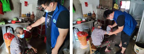 得到消息的焦敬鵬在詢(xún)問(wèn)到奶奶的家庭地址后,整理好檢查身體的醫(yī)療設(shè)備和生活物資就即刻前往老人家的家里。來(lái)到老人家中,焦敬鵬先說(shuō)明了來(lái)意,詢(xún)問(wèn)老人的身體狀況,是否有哪里感到不適,還跟她說(shuō)現(xiàn)在外面疫情反復(fù),一定要注意身體,出門(mén)要戴好口罩。便給老人測(cè)了血壓,因?yàn)闇y(cè)出的血壓值很高,他不斷叮囑老人要繼續(xù)吃藥。隨后拿出體溫計(jì)給奶奶測(cè)量了體溫,一切正常。臨走前,焦敬鵬拿出一疊口罩給老人提醒老人外出時(shí)要時(shí)刻記得戴好口罩,一旦出現(xiàn)咳嗽、發(fā)熱等身體異常情況,要及時(shí)與村委會(huì)聯(lián)系。并承諾過(guò)段時(shí)間還會(huì)再來(lái)看望老人。