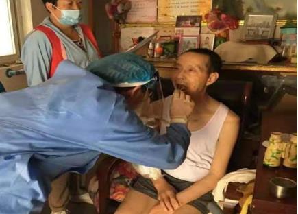 為做好疫情防控,南京各社區(qū)積極的開展了全民酸檢測采樣工作。為了減少特殊群體在進行核酸檢測時遇到不必要的麻煩,或無法前往采樣點,南京市江寧區(qū)橫溪街道陶吳社區(qū)志愿者協(xié)同醫(yī)護人員于7月22日上門為社區(qū)內(nèi)行動不便的老人做核酸檢測。