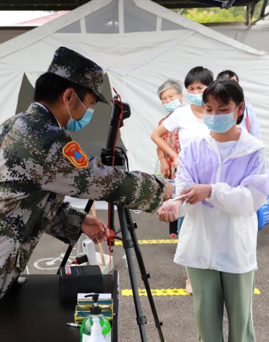檢測現場,這些退役軍人志愿者,雖然沒有穿軍裝,但始終堅守始終,沖鋒在前,發(fā)揮著人民子弟兵永遠為人民的風范,保持著“退役不褪色”軍人本色,積極維持現場秩序,引導群眾有序進行排隊,為居民量體溫,發(fā)放號碼,確保群眾保持安全距離,同時,遇到行動不便的老年人,退役軍人志愿者立即上前攙扶,為群眾積極解決疑難問題,他們始終堅守各自崗位,為社區(qū)核酸檢測工作,貢獻出自己的一份力。