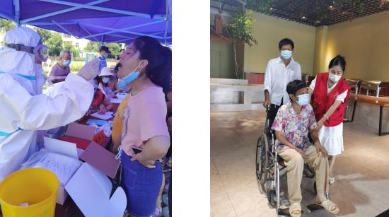 社區(qū)工作者,網(wǎng)格員,志愿者在檢測點24小時隨時待命耐心疏解,采樣的同時,還為村民講解核酸檢測的重要性和個人防護(hù)注意事項,針對殘疾人,年紀(jì)大出行不便的老人醫(yī)護(hù)工作者入戶上門檢測采集。