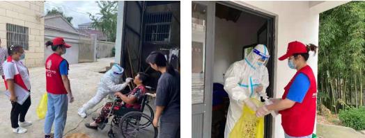 檢測期間,志愿者耐心地安撫老人,采樣的醫(yī)務(wù)人員動作輕柔,盡量減少老人的不適感,整個過程不到一分鐘。完成采樣后,等待在旁的志愿者認真仔細地對周圍環(huán)境進行消殺。紅旗村為轄區(qū)特殊群體提供上門采樣服務(wù),確保不漏一戶、不漏一人,戰(zhàn)“疫”中詮釋擔當與溫度。