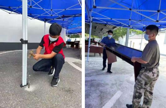 搭帳篷、設(shè)置一米線、老幼病殘?jiān)械却齾^(qū)和綠色通道。。。。。。志愿者們?cè)诂F(xiàn)場(chǎng)忙碌地?zé)峄鸪?。吸取一輪核酸檢測(cè)的經(jīng)驗(yàn),紅旗村黨總支書(shū)記詹強(qiáng)酉帶領(lǐng)工作人員利用會(huì)議桌椅搭建回字形檢測(cè)通道。同時(shí),根據(jù)轄區(qū)情況,做好應(yīng)急工作方案,規(guī)劃全員核酸檢測(cè)導(dǎo)視圖,部署安排人員分工,分清區(qū)域責(zé)任到人。加強(qiáng)宣傳,營(yíng)造濃厚的防疫宣傳氛圍??紤]好全民核酸檢測(cè)的每一個(gè)細(xì)節(jié),要求全體人員掌握防疫常識(shí),加強(qiáng)巡查,對(duì)轄區(qū)人員底數(shù)清、數(shù)據(jù)準(zhǔn)。