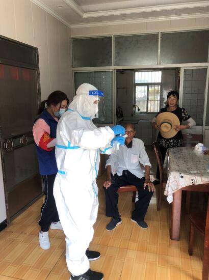 在對(duì)未參加核酸檢測(cè)的人員信息的梳理過(guò)程中,工作人員發(fā)現(xiàn)未參加核酸檢測(cè)人員基本為老年人,考慮到可能是由于身體不便的原因未參與核酸檢測(cè),工作人員與醫(yī)護(hù)人員做好了各項(xiàng)準(zhǔn)備工作,動(dòng)身前往一戶戶村民家中。