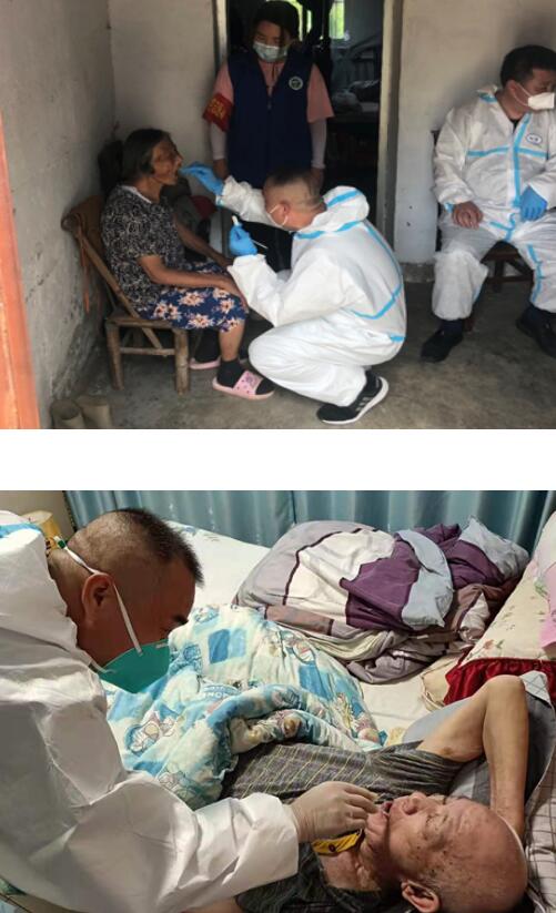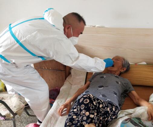 在上門(mén)進(jìn)行核酸檢測(cè)的過(guò)程中,工作人員對(duì)因?yàn)樯眢w原因不方便到現(xiàn)場(chǎng)進(jìn)行檢測(cè)的高齡癱瘓老人細(xì)致入微地進(jìn)行采樣工作,對(duì)于高齡癱瘓老人,工作人員與醫(yī)護(hù)人員給予了更多的耐心與關(guān)懷。