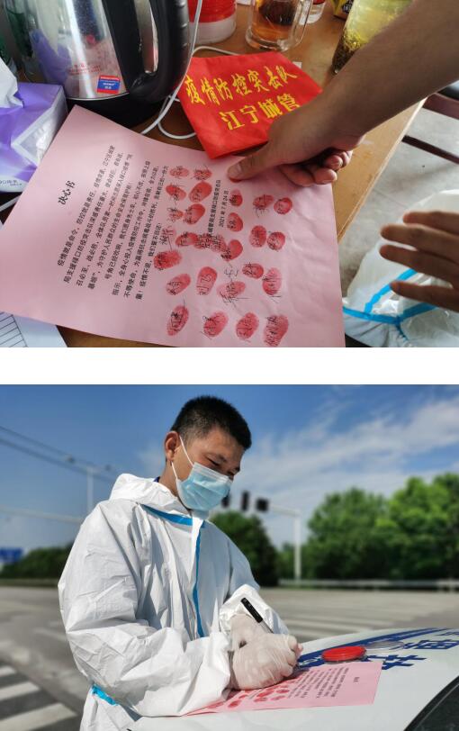 “讓我先簽!”“突擊隊員們共進退!”“疫情面前,我們都是戰(zhàn)士。”……一份份滿是紅手印的決心書,道出了區(qū)城管局105名祿口防疫突擊隊全體隊員的鄭重承諾。疫情突襲,南京市江寧區(qū)城管局支援祿口防疫突擊隊第一時間奔赴祿口街道,守土有責(zé)、恪盡職守,堅持把學(xué)習(xí)黨史“我為群眾辦實事”體現(xiàn)在基層一線。