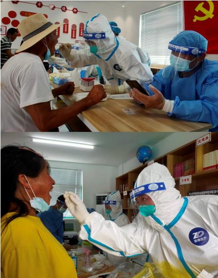 醫(yī)護(hù)人員們發(fā)揮自身專業(yè)優(yōu)勢,在疫情防控的第一線為居民群眾進(jìn)行咽拭子采樣。
