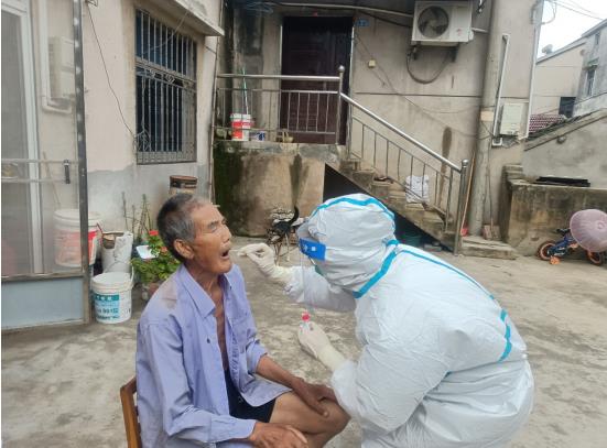“請大家提前出示健康碼、身份證!”“請大家間隔一米距離,有序排隊,不要插隊!”……核酸檢測現(xiàn)場,該村工作人員們用“小喇叭”引導(dǎo)前來采樣的居民們進行各項檢測工作。該村還在現(xiàn)場設(shè)置一米間隔線,讓居民們在排隊時保持一定的距離,從而保證大家的人身安全。對于一些無法前往集中檢測點的老年人以及殘疾人等特殊群體,該村便對其給予“特殊照顧”,通過線上電聯(lián)和線下入戶走訪等方式,詳細(xì)登記他們的基本信息和家庭住址,帶領(lǐng)醫(yī)護人員親自前往他們家中,為他們提供核酸檢測上門服務(wù)。