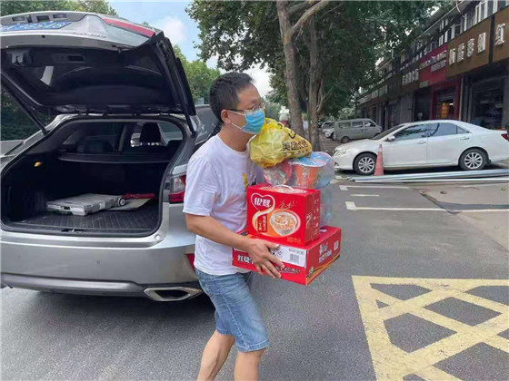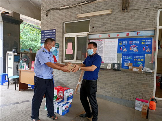 8月5日,棲霞社區(qū)黨員陳來寶來到九鄉(xiāng)河小區(qū)與楓翔小區(qū)的防疫檢查站,為疫情防控一線值守人員送上6箱礦泉水、1箱冰棒、4箱牛奶,為疫情防控貢獻(xiàn)力量。他表示:“自疫情發(fā)生以來,社區(qū)黨員干部始終戰(zhàn)斗在抗擊疫情的第一線,為了保障人民群眾的生命健康安全,每日加班加點(diǎn)進(jìn)行疫情防控工作。作為一名共產(chǎn)黨員,我應(yīng)當(dāng)發(fā)揮表率作用,盡自己的綿薄之力,協(xié)助防疫工作人員,黨民同心,共同渡過疫情難關(guān)。”森林公安李齊天老師也拖著一車物資到卡點(diǎn)捐贈(zèng)。“感謝曹阿姨送來清涼爽口的糖片、檸檬片”“感謝志愿者送來的4箱口罩、1箱消毒水”······微信群里紛紛點(diǎn)贊。除此之外,還有很多的愛心居民、企業(yè)也給社區(qū)送來了防疫物資,例如仙林碧水源污水處理廠、棲霞古寺、宏鼎裝飾城、棲霞車隊(duì)等。